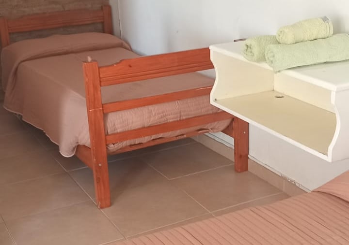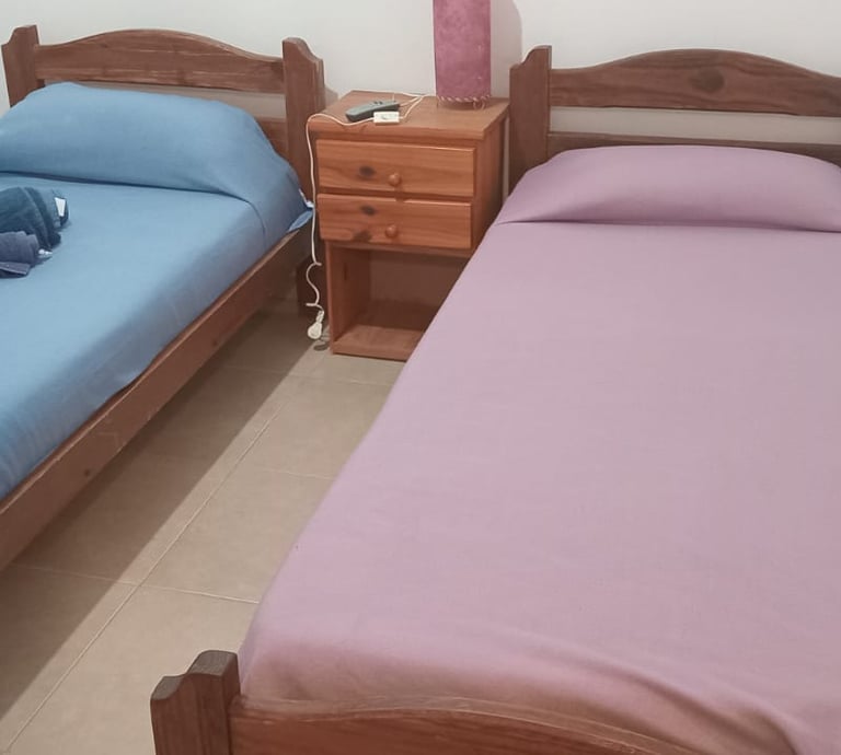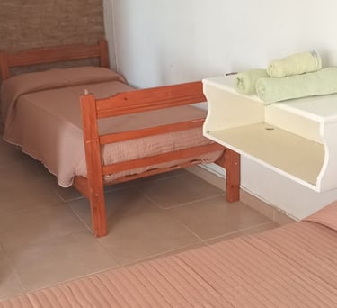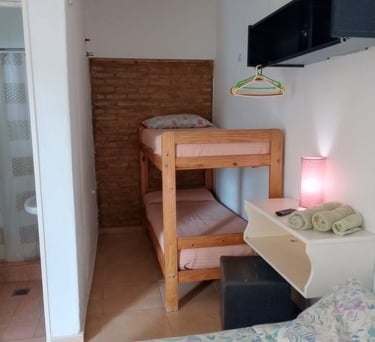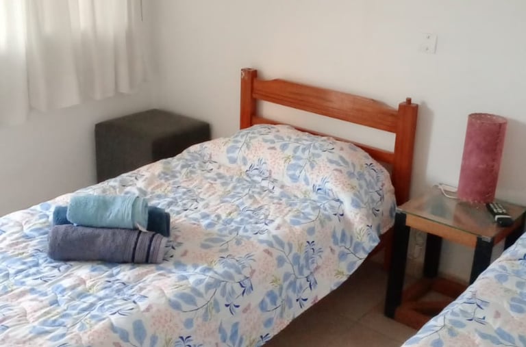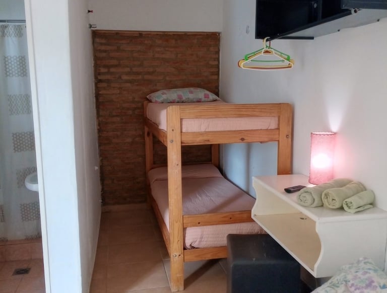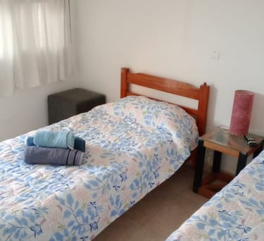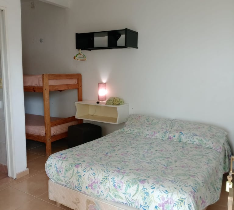 Cómoda habitación para dos personas, con luz natural y decoración sencilla que invita a relajarse tras un día explorando Puerto Madryn.