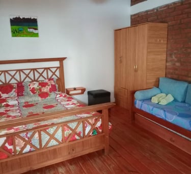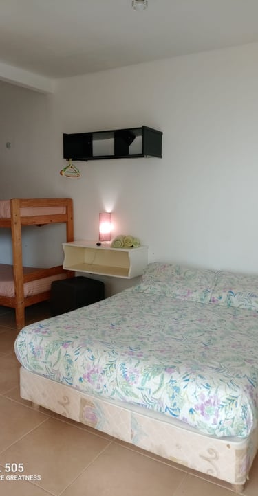 Espacio amplio con camas individuales, ideal para viajeros que buscan un ambiente amigable y económico para varias personas.